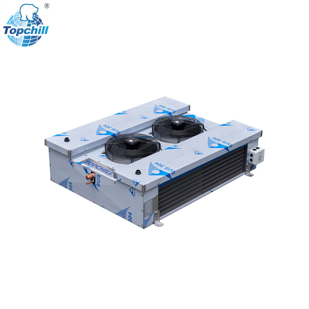 Air cooler (also called chiller) is a kind of cooling equipment suitable for various cold storage, Chengdu Tianqi air cooler has three types of 4.5-pitch, 6-pitch and 9-pitch, which are respectively suitable for cold storage of different storage temperature. It has the advantages of compact structure, light weight, not occupying the practical area of the cold storage, etc. Compared with the natural convection exhaust pipe, it can make the food stored in the cold storage cool down quickly, and greatly improve the freshness of the stored food.