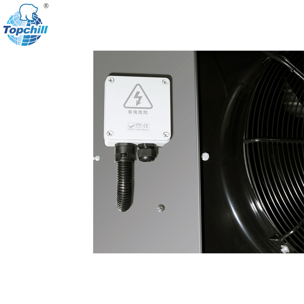 Air cooler (also called chiller) is a kind of cooling equipment suitable for various cold storage, Chengdu Tianqi air cooler has three types of 4.5-pitch, 6-pitch and 9-pitch, which are respectively suitable for cold storage of different storage temperature. It has the advantages of compact structure, light weight, not occupying the practical area of the cold storage, etc. Compared with the natural convection exhaust pipe, it can make the food stored in the cold storage cool down quickly, and greatly improve the freshness of the stored food.