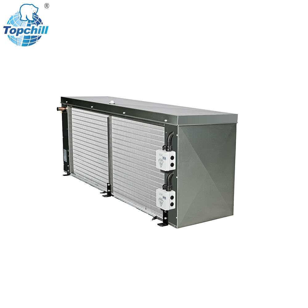Air cooler (also called chiller) is a kind of cooling equipment suitable for various cold storage, Chengdu Tianqi air cooler has three types of 4.5-pitch, 6-pitch and 9-pitch, which are respectively suitable for cold storage of different storage temperature. It has the advantages of compact structure, light weight, not occupying the practical area of the cold storage, etc. Compared with the natural convection exhaust pipe, it can make the food stored in the cold storage cool down quickly, and greatly improve the freshness of the stored food.