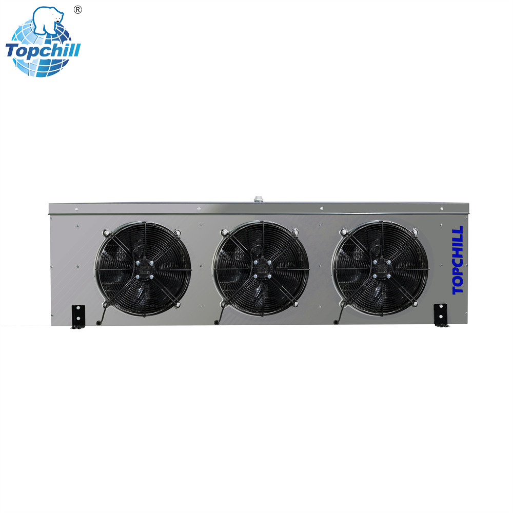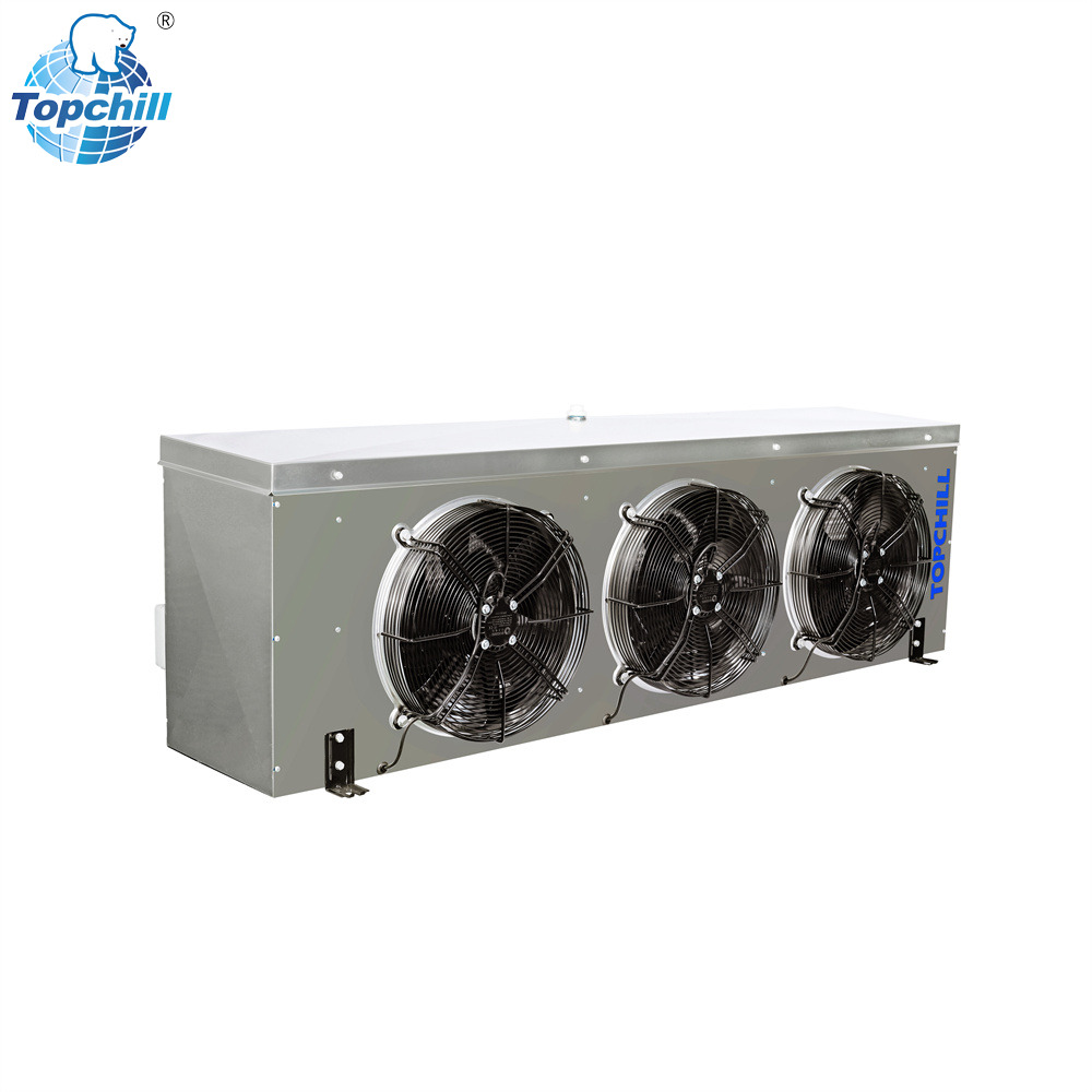 Air cooler (also called chiller) is a kind of cooling equipment suitable for various cold storage, Chengdu Tianqi air cooler has three types of 4.5-pitch, 6-pitch and 9-pitch, which are respectively suitable for cold storage of different storage temperature. It has the advantages of compact structure, light weight, not occupying the practical area of the cold storage, etc. Compared with the natural convection exhaust pipe, it can make the food stored in the cold storage cool down quickly, and greatly improve the freshness of the stored food.